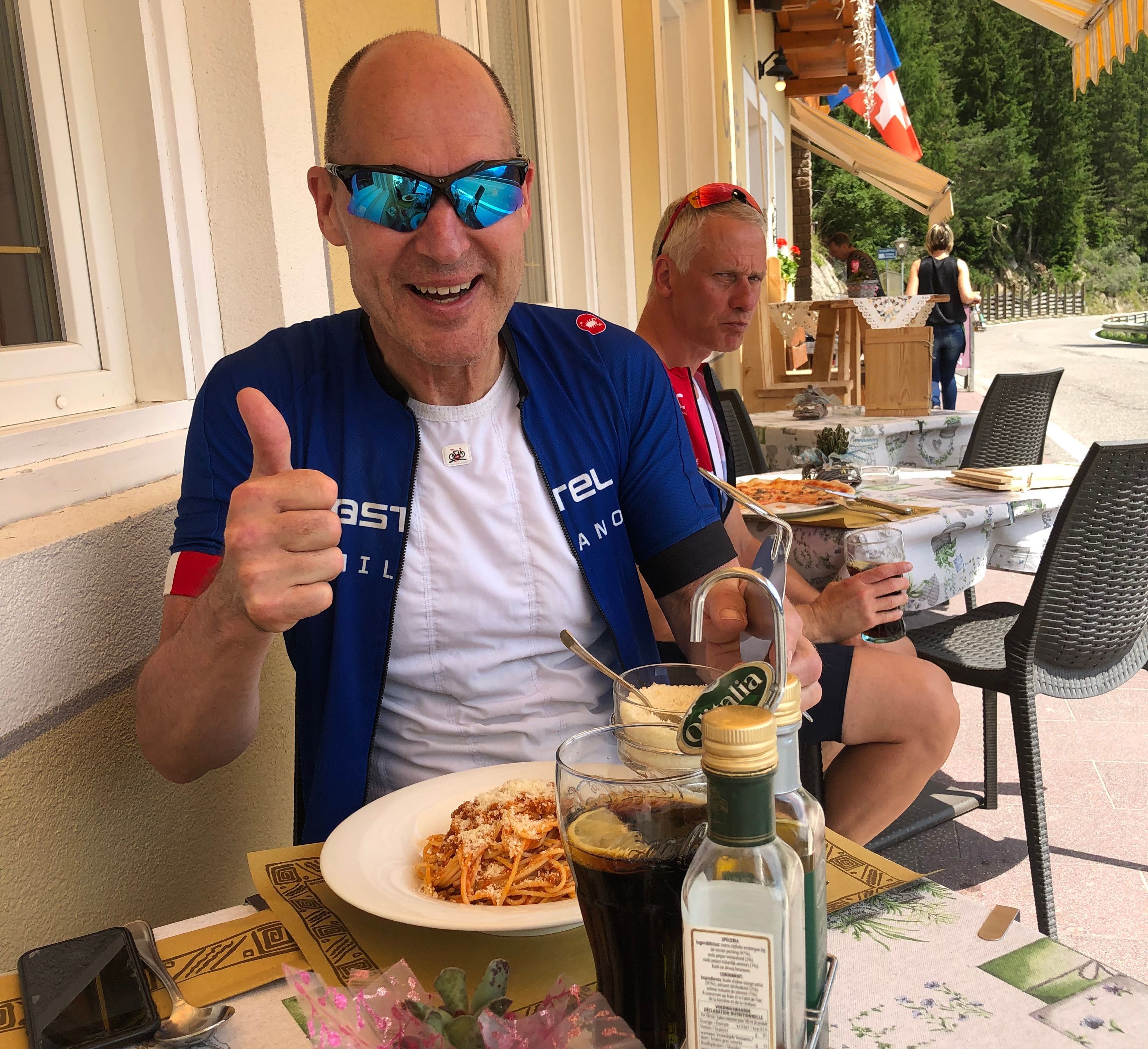 I Italien är det klass på cykelfikan! Hans gjorde tummen upp för spaghettin!
