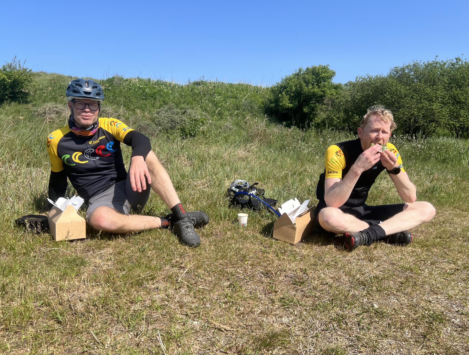 Första dagen tar vi oss från Fredrikshamn väster ut mot Jyllands nordvästra kust. Var och en cyklar i sitt eget perfekta tempo och ungefär halvvägs i Hjörring är det återsamling för en välbehövlig energipåfyllning och gofika!