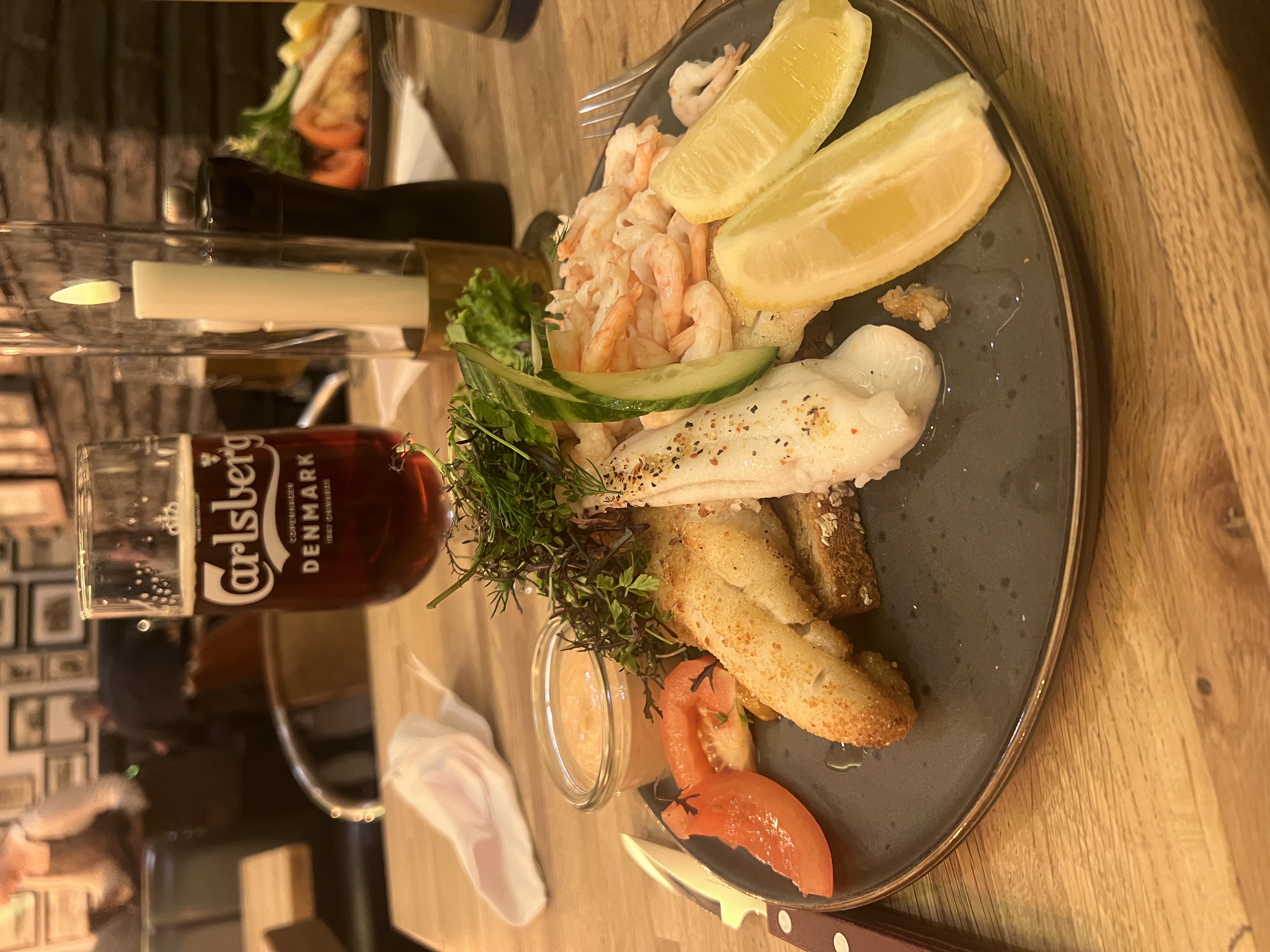 Stjerneskud = rödspätta friterad och ångkokt med nyfångade räkor och en dansk öl - världsklass!